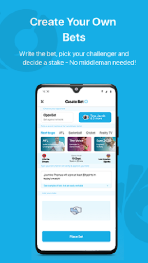 - select your opponent(s) or make an “Open” handshake bet which will be available for anyone in the network to accept;